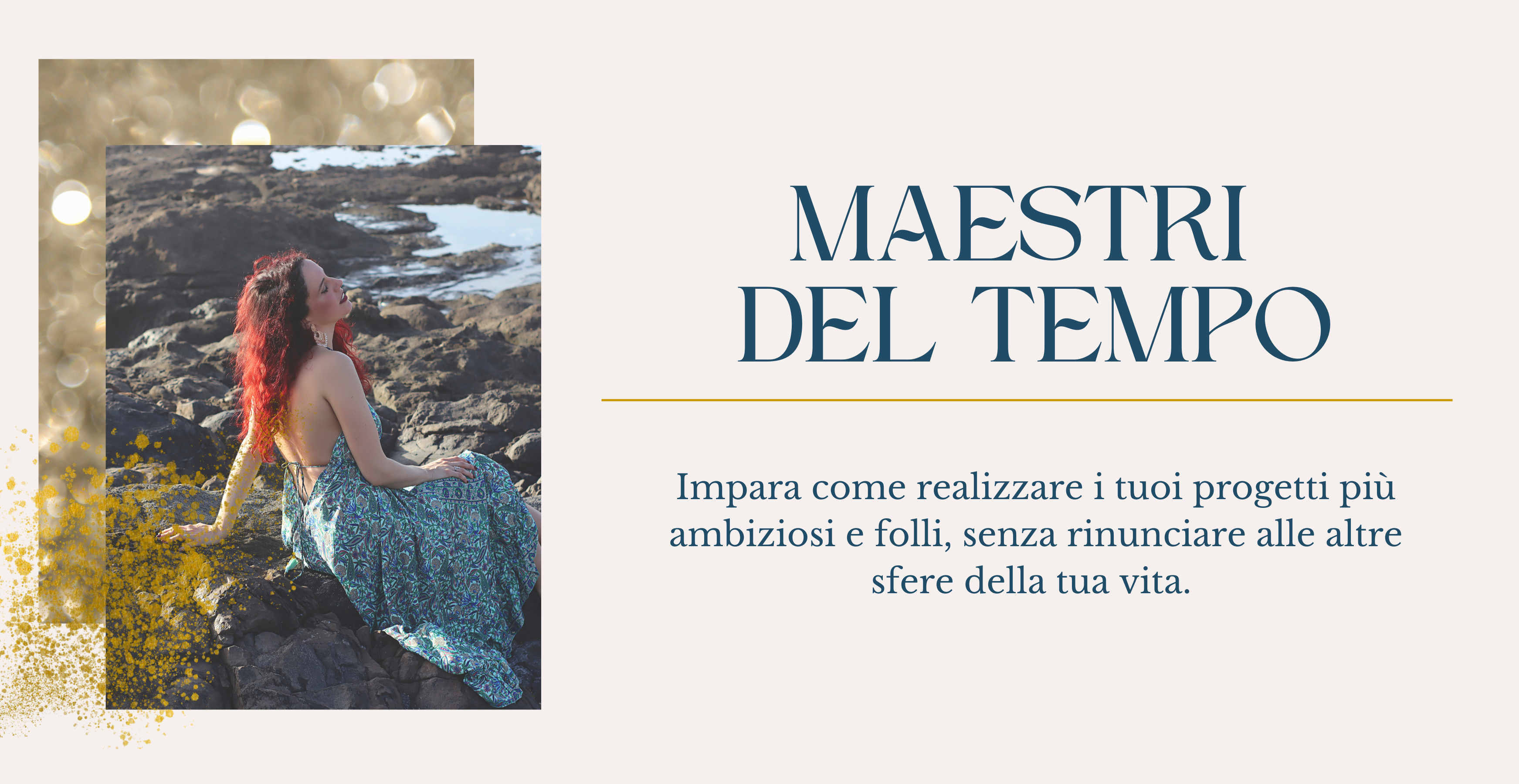 “Maestri del Tempo” è l'immersivo per riprogrammare il tuo rapporto con il Tempo integrando pianificazione strategica ed energetica, in questi giorni insieme andremo a rivoluzionare la tua agenda, per allineare la tua vita alla tua essenza e ai tuoi reali desideri.